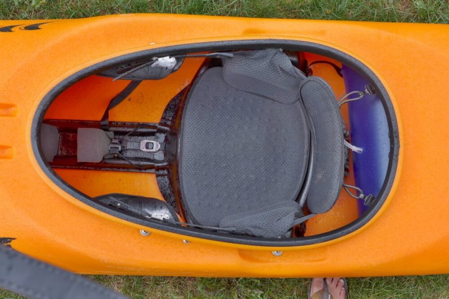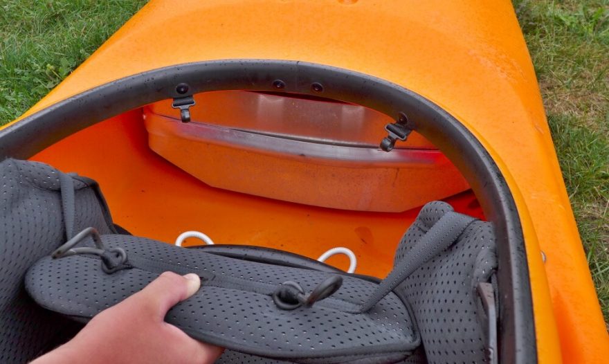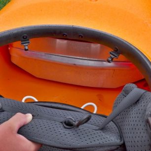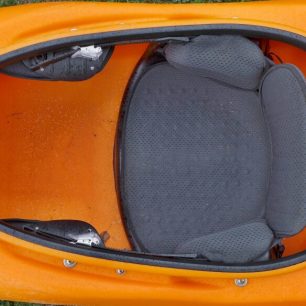 Než vyrazíme na vodu, musíme si seštelovat sezení. Sedačka je pohodlně polstrovaná, jak jsme u Prijonu zvyklí a měkké a pohodlné jsou i boční opěrky. Zádová opěrka je na tom stejně a dotahuje se klasicky na ráčny umístěné nad stehenními opěrkami. Tyto jsou ergonomicky tvarované, plastové a také polstrované a v případě potřeby nastavitelné. Zrcadla před nohami jsou upevněna na plochých kovových pásech a snadno si je nastavíte povolením šroubů a posunutím. V zadním kokpitu najdete pod sedačkou ještě plastovou kolejnici s možností uchycení házečky apod., což v předním kokpitu není. Výrobce totiž vychází z předpokladu, že vzadu jede zkušenější jezdec a vpředu spíš méně zkušený nebo klient. Každopádně vpředu není problém umístit házečku a další materiál třeba za sedačku.