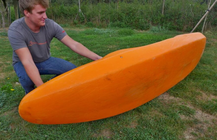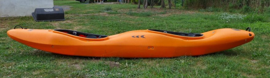 Když už loď zkoumáme, pojďme se podívat taky na její tvar. Kajak má vpředu solidní rocker, aby se snadno vynořoval. Rocker končí přibližně v úrovni opěrek pro stehna u předního kokpitu a přechází v ploché dno s hranami. Od špice dozadu se loď pomalu rozšiřuje a nejširší je těsně před zadním kokpitem. Záď lodi je seseknutá do rovna a nechybí tady madlo z plochého popruhu pro snadné nošení a vylévací špunt. Materiál lodi je lety prověřený HTP a deblkajak je, stejně jako další lodě Prijon, vyroben technologií vyfukování do formy (blowmolding).