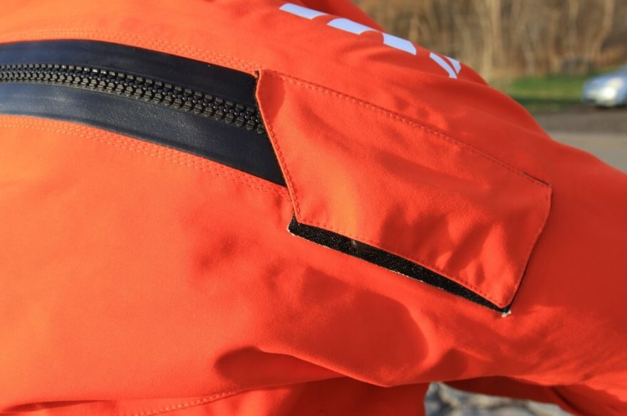 U krku je latexová manžeta překrytá 2 mm silným neoprenem. Na rukávech jsou rovněž latexové manžety, a i zde jsou překryté neoprenem o tloušťce 2 mm. Na levém rameni je bílé logo a nápis JAMAN. Vstup do obleku řeší vodotěsný TIZIP, který je vedený přibližně přes lopatky. Zip není chráněn légou v celé délce. Krátká léga je pouze na konci, kde zip dopínáte, aby nedošlo k poškození jezdce zipu. Zip je také chráněn proti roztržení při nešetrné manipulaci, viz. foto.