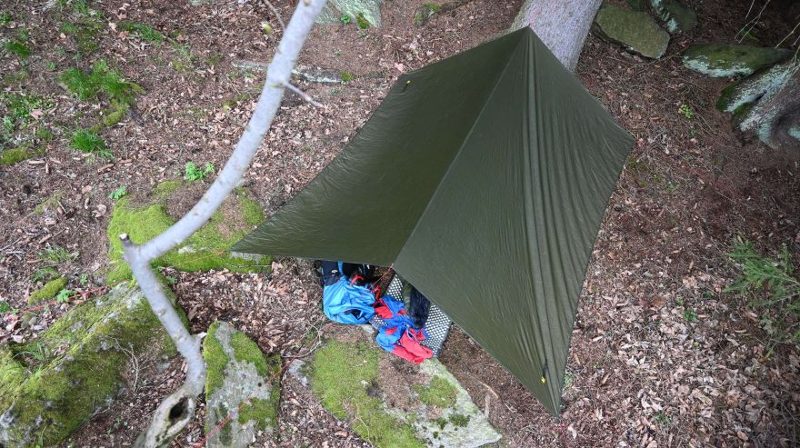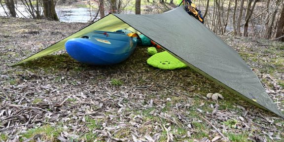 Shelter Tarp se stal součástí mých jarních a letních seakajakových výprav ať už jako záložní přístřešek nebo jako společenský stan, který natáhnete mezi stromy, k autu nebo si vypomůžete pádlem či větví. Stejně tak jsem neváhal při použití tohoto tarpu na dvoudenní splutí Jizery od soutoku s Mumlavou do Semil. Dále mi posloužil při víkendové výpravě a přechodu Vysočiny při kompletaci „Koruny Vysočiny“ (výstup na všech 14 vrcholů nad 800 m). Jak magická číslovka ta osmička. Stejně jako ležatá ve variantách postavení a používání tarpu od české značky Warmpeace.