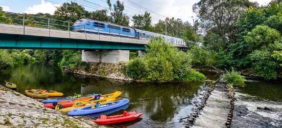 Záhy končí vodácká pohoda a přede mnou teď leží pár kilometrů „industriálního úseku“ plného jezů, přenášek a náhonů. Nejprve vjíždím na nepříjemný olej před jezem Háj, kde to beru kratší variantou náhonem vlevo. Zdejší tábořiště Vila Háj představuje obvyklý cíl vodáků, co jedou z Postřelmova, já jsem dnes zatím asi v polovině etapy. U vodní elektrárny a tábořiště mne čeká delší přenášení s nepříjemným sešupem k řece. Tady by se určitě hodilo břeh pro vodáky upravit, terén je to spíše horolezecký. Po kilometru míjím další křižovatku, kde pro změnu jedu vpravo náhonem kolem pískovny Mohelnický bagr. Kdo nespěchá, může volit plavbu přírodním korytem mimo náhony, ale za nižšího stavu vody tady budete spíše provozovat hydrotrekking než pádlovat…