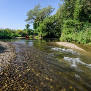 Morava v Postřelmově připomíná spíš potok, záhy ale přibírá vodu Desné a znatelně se rozšiřuje. Čistá voda unáší můj kajak ve stínu stromů oblázkovým řečištěm, místy se koryto zakroutí, jakoby řeka nevěděla kudy kam, a občas mi připraví nějakou tu překážku v podobě padlého stromu nebo mělčiny, abych se nenudil. Čistě vodácky jde mezi Postřemovem a jezem Háj asi o nejhezčí úsek střední Moravy, ale i příroda tady ukazuje, co umí. Míjím rodinky kachen a morčáků velkých, zahlédnu skorce a vyplaším ledňáčka. Bobři asi spí, ale známky jejich neúnavné činnost jsou vidět každou chvíli.
