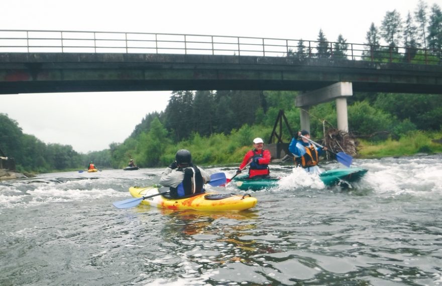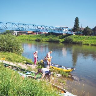 Přejít do galerieJako členové více než dvacetičlenné výpravy vodáků různého věku (4–65 let) startujeme v sobotu ráno v Tvrdošíně. Po předchozí noční cestě autobusem z české kotliny sundáváme lodě (laminátové či plastové kánoe a kajaky) z přívěsu nebo vytahujeme nafukovací kánoe z útrob autobusu. Nasedáme na pravém břehu řeky u mostu a vyplouváme. Díky doprovodnému busu můžeme jet „nalehko“. Případné zásoby potravin lze dokoupit v místním supermarketu na druhé straně řeky.