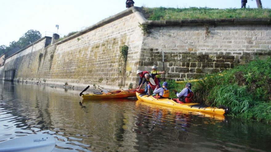 Když se dá plout na seakajaku na horní Ohři nebo po Cidlině, tak proč by to nešlo po Ohři dolní? Tentokrát dáváme na vodu v Terezíně. Pod jezem, protože se nám nechce složitě přenášet poslední jez na Ohři, který není pro vodáky zrovna přívětivý. Ale najít tady přístup k řece je docela složité. V podstatě se dostáváme na vodu až na přírodním levém břehu pod pevností. Jinde to prostě nejde.