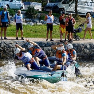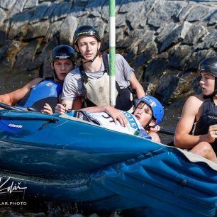 Čas letí a se startovním signálem se vrháme na trať. Vcelku se daří a jedeme, co jsme si řekly, až na tu desítku, potvoru, kde si dáváme trestné kolečko. Nakonec se ve výsledcích objeví i padesátka, no nevadí, aspoň je co zlepšovat. Cestou na start druhé jízdy koukám na kluky z Letohradu, jede jim to opravdu pěkně! Tak hurá na vodu… Daří se a druhou jízdou si zajišťujeme prvenství – jupí! Tygříci berou stříbro a RC Juniorky bronz. V mužích si zlato vyjeli zkušení borci z Hika, druzí jsou boleslavští a v opravdu těsném závěsu kluci z Hodonína. Ani jsem si nemyslela, že na takové trati by se dalo jet takhle vyrovnaně.