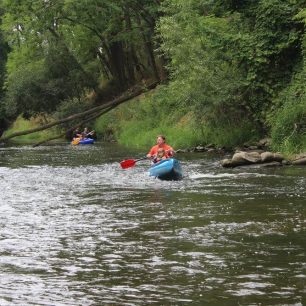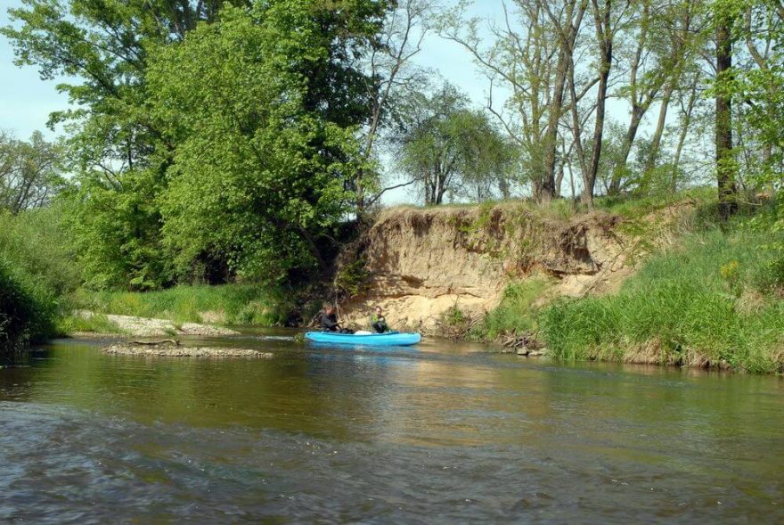 Přesně tak, nejen pro mě je to nejoblíbenější úsek na řece, naskytne se ti úžasná scenérie několikametrových kolmých břehů a zákrut, které vymlela postupem času sama řeka. Budeme míjet zástupy starých dubů a jiných stromů s obnaženým kořenovým systémem. A co je na tomto úseku nejlepší – kolem dokola nejspíš neuvidíš ani živáčka, snad vyjma ryb a ledňáčka říčního, který přelétává mezi vymletými břehy.