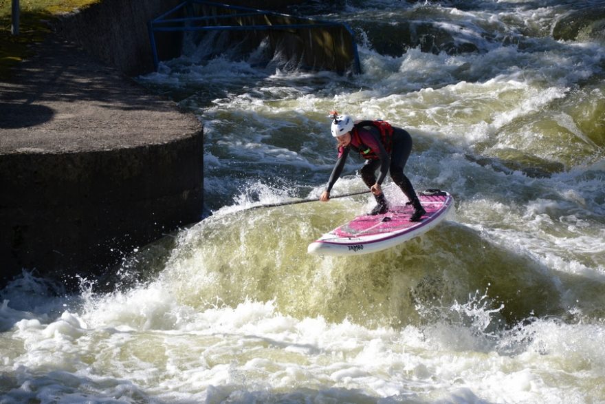 Pamatuji si, že když jsem poprvé viděla na internetu video, jak kluci sjíždějí na paddleboardu slovinskou řeku Soču, pomyslela jsem si, jak je to bláznivé a vrtalo mi hlavou, zda je to vůbec možné. Už druhý rok jsem se však s paddleboardem sžila natolik, že mi jezero začalo připadat moc nudné, a tak jsme společně s tátou, který si tento sport také zamiloval, začali vyhledávat jednoduché řeky a potůčky. Pak jsme jednou o prázdninách přijeli na akci SUP fórum do Českého Vrbného, kde mi kluci z Paddleboardshopu poprvé ukázali, jak jezdit na divoké vodě, a tím to vše začalo.