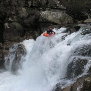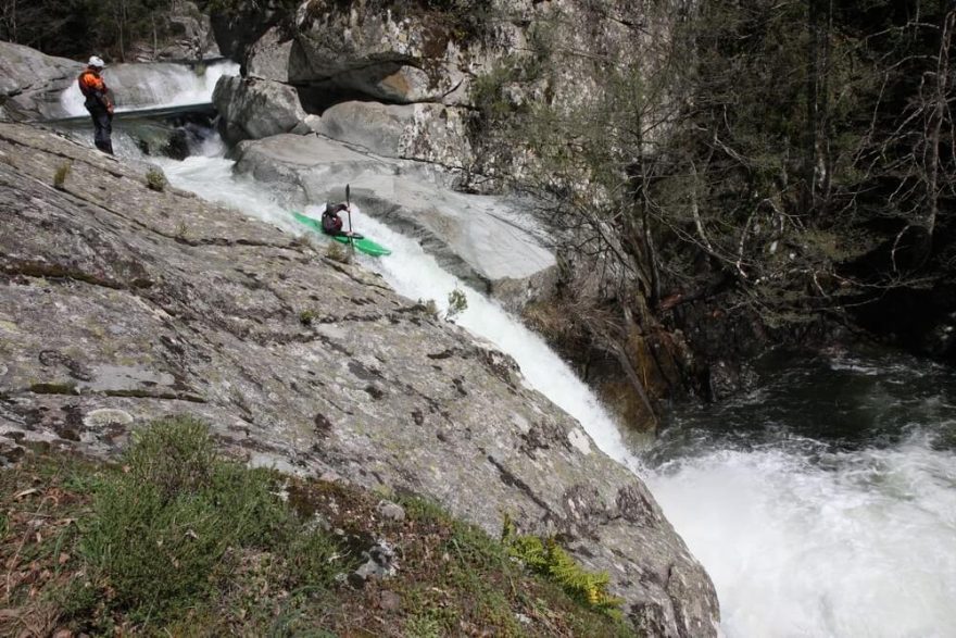 Pak jsme si dali pěknej vodopád ve Francii, to už taky nevim, jak se jmenovalo. Byl to prvosjezd, nad kterým jsme dlouho dumali a já furt říkal, že ho nepojedu, ale najednou se mi tam objevila lajna a nakonec to bylo moc pěkný. Taky to byla asi dvacka.