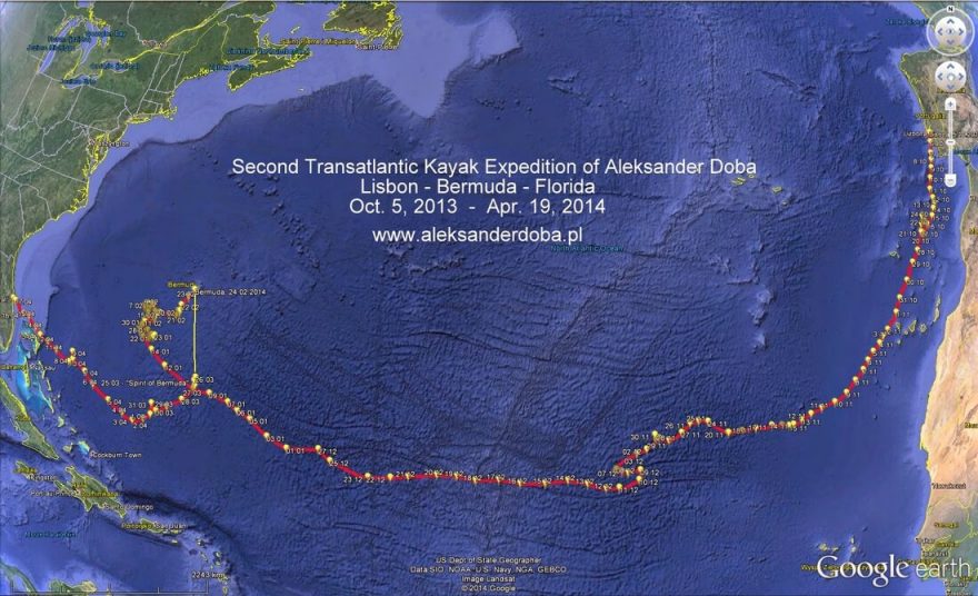 Olek byl tou dobou už tři měsíce na cestě přes Atlantik. Sám, jen se svým na míru postaveným kajakem Olo. Ve svých 67 letech vyrazil 5. října 2013 z Lisabonu s cílem přepádlovat Atlantik, a aby to neměl moc snadné, vybral si pro svou cestu trasu, kde jsou od sebe Evropa a Amerika nejdál. Po dlouhých 196 dnech uspěl, a když 19. dubna 2014 dorazil do New Smyrna Beach na Floridě, měl za sebou 6900 námořních mil (přes 12 700 km) namísto původně plánovaných 5400.