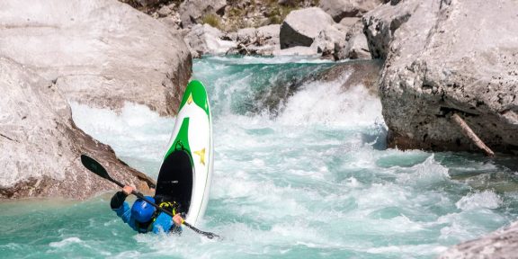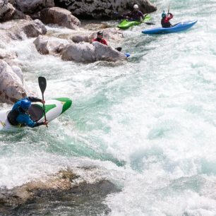 Křídla má každá slalomka, sjezďák i některé plasťáky. Na naší lodi jsou výraznější než jinde. Dodávají sekundární stabilitu a při zatopení je to objem navíc, který tlačí loď dopředu. Dokud je jezdec v aktivním předklonu a pádluje, šířka křídel není ve vodě. Když se ale zakloníš, dají ti stabilní platformu pro točení. Nebo když jedeš v probublané vodě, loď se přirozeně boří a křídla tě pak drží doslova nad vodou.