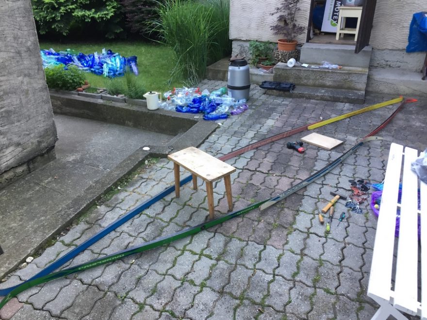 Fáza budovania loďky bola nekonečná, všetko som riešil operatívne, nemal som žiaden manuál. Dôležitým faktorom bolo, aby sa dala následne po splave rozobrať a zrecyklovať, teda nepoužívať žiadnu chémiu ako lepidlá a podobne. Poslednou fázou bolo testovanie výtlaku a manévrovania na kľudnej vode.