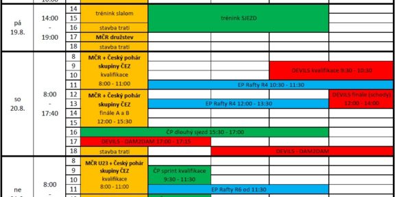 Jako první vždy všechny zajímá rozpis akcí a pouštění vody. Ten si můžete stáhnout jako PDF přimo tady! Stejně jako každý rok platí, že v době konání závodů jsou jednotlivé úseky řeky uzavřeny pro vodáckou veřejnost a volné splutí. Respketujte prosím toto pravidlo a dopřejte závodníkům regulerní podmínky pro poměření sil.