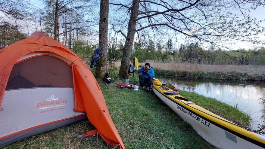 První noc jsem strávil přímo u vody, na jednom z mnoha míst, které jsou pro přespání určena. Spal jsem pod hvězdami, s řekou po boku a lesem v zádech. Všude okolo jen šero, ticho a vzdálené volání nočních ptáků. Romantika jak má být.