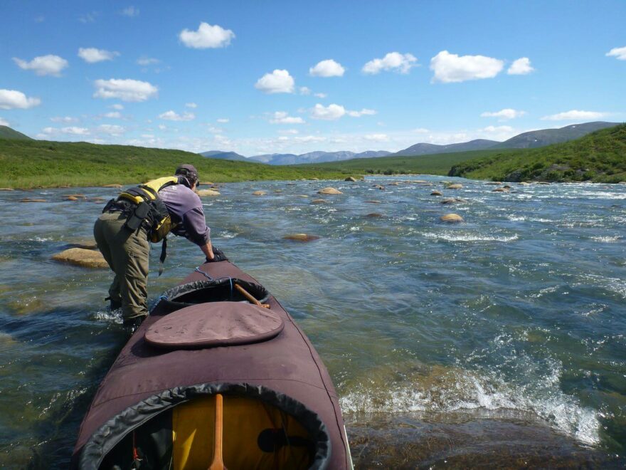 Necítíme se být sportovci, ale spíše poutníci. Na rozdíl od příznivců sjíždění divoké vody máme v 5 m dlouhé kánoi přes 200 kg vybavení na 2 měsíce. Ani jeden z nás není nijak trénovaný na divokou vodu, ale máme zkušenosti se sjížděním několika tisíc kilometrů kanadských řek. V opuštěné krajině odkázáni sami na sebe a tisíc kilometrů od civilizace má obtížnost peřejí úplně jiný rozměr. Pro případ ztráty kánoe máme na sobě opasky a v nich pepřové spreje na medvědy, folii na nouzové spaní, několik zapalovačů na rozdělání ohně, nůž, jehlu a nitě, a třpytku s háčkem a vlasec na lov ryb. Pár věcí tu člověka dělí od zimy a hladu. Jak řekl místní přítel – indián: „Pokud máš plachtu, sekeru a sirky, nemůžeš tu v létě umřít.“