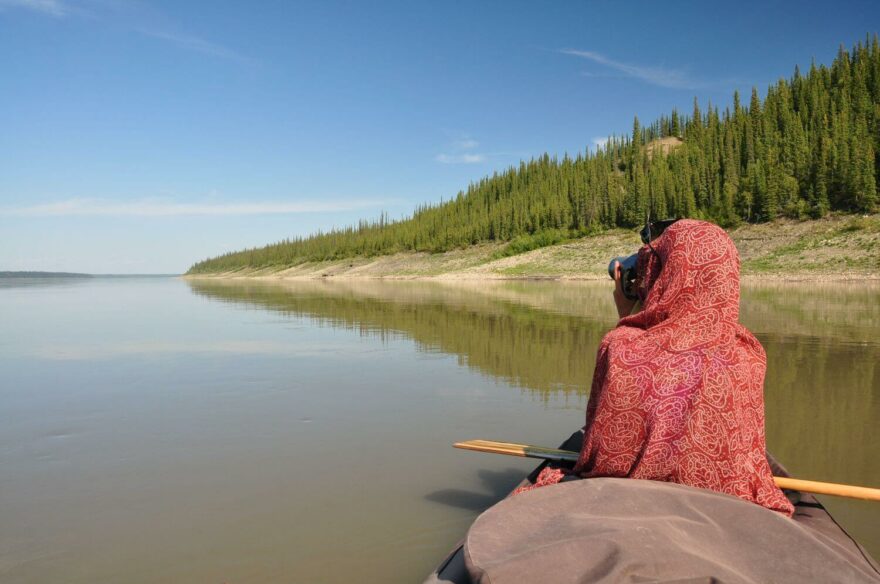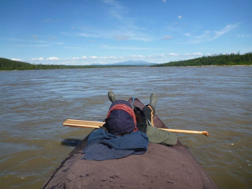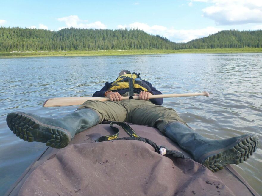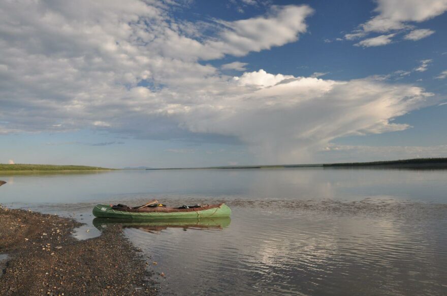 Druhý den nás čeká 70 km na jeden zátah do nejlidnatějšího místa na řece – Norman Wells. Je naprosto tichý klidný den. Ani moc nepádlujeme. Zde si je třeba vzdálenost spíše odsedět než odpádlovat. Jíme a různě ležíme v kánoi. Pádlujeme vždy do středu řeky, kde je nejrychlejší proud. Pak jsme ale snadno přes kilometr od břehu a vůbec nám nepřipadá, že někam jedeme.