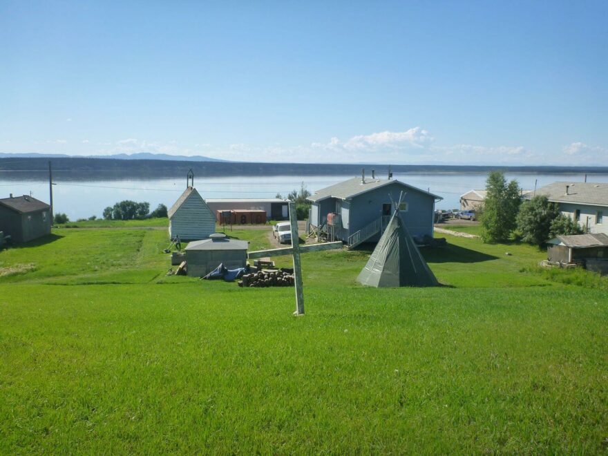 Stejný den večer: Tsigeshik, poslední miniaturní osada. Kempujeme u řeky nedaleko domků na kopci, kde druhý den nalézáme malé muzeum a v něm, světe div se, před 10 lety vůbec poprvé objevená lebka obřího bobra! Je skoro větší než lidská, zato s obrovskými zuby. Nikdo netušil, že tento tvor existoval. Jen v bájích místních indiánů o hrdinovi Yamoria měli místní vždy jasno. Znamená to, že i tento hrdina musel existovat! Ode dnešku budu brát mýty víc vážně. Přichází nás navštívit George, 86 let starý Indián, ještě jde o půlnoci chytat ryby. Vypadá fakt dobře: