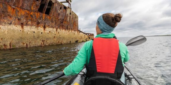 Kromě zajímavé geologie se v pobřežních oblastech nachází také několik vraků lodí, které lze z kajaku velmi snadno prozkoumat. V klidných dnech, kdy jsou malé vlny, je nejlepší vyplout s kajakem na moře v písečných zátokách a pádlovat k rezavějícím vrakům. Voda v Atlantiku je průzračně čistá, a tak si můžete většinu z pozůstatků vraku prohlédnout z hladiny, aniž byste se museli potápět do studené vody.