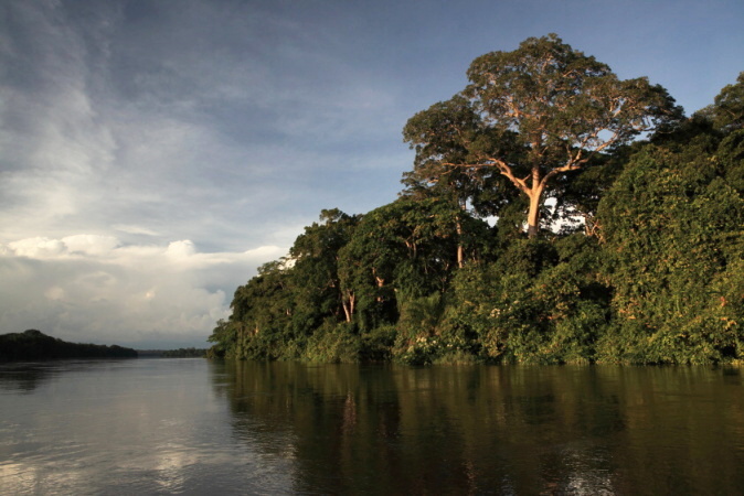 Řeka se rozšířila na úctyhodných sedm kilometrů a během plavby jsme míjeli velkou spoustu ostrovů. Bohužel i sem se po řece rozšířil vodní hyacint, který je pravou zhoubou afrických řek. Tato rychle se šířící rostlina dokáže zaplevelit jakoukoliv vodní plochu a je nebezpečím nejen pro lodě, ale také zvířata. V každé hodině se prales barevně měnil, ale nejhezčí byl v zapadajícím slunci. Neproniknutelná klenba lesních velikánů nešla zdolat ani mačetou. Celá řada míst byla zaplavena vodou z rozpínající se řeky. To naopak přivítala sloní populace, která se podle stop v takových bažinkách přímo vyžívala. Přenocování bylo velice obtížnou záležitostí. Buď se nedalo vůbec zakotvit, a pak nás čekalo spaní na lodi uvázání ke stromům, nebo situace vyžadovala vysekat mačetou u břehu plácek na stan, což často zabralo i několik hodin. Za to večer u ohně za zvuků pralesa a jeho obyvatel patřil k jedněm z nejhezčích okamžiků. Představa jízdy dobrých 14 dní okolo fascinující přírody, která tu je stále bez zásahu lidí musí uchvátit každého.