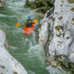 Koritnica je svižná alpská říčka s trochu větším spádem než Soča. Pramení v kotlině Loška Koritnica. Jediné nasedací místo je pod soutěskou u pevnosti Kluže, která chrání příjezd do Bovce již od dob Napoleona. V žádném případě nepřemýšlejte o nasedání nad soutěskou, bylo by to fatální. Podle vodního stavu se Koritnica pohybuje mezi WW III–IV, ale na čtyřku už musí být alespoň 20 m3/s. Online vodočet bohužel již dlouho nefunguje. Doporučuji před nasednutím dojít lesíkem asi 200 m po proudu a podívat se na malou soutěsku a prvních 50 m za ni. Peřejky tady na sebe navazují rychleji než na horní Soče a je o to důležitější držet skupinu pohromadě.