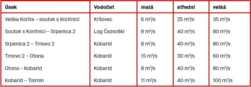 Pro orientaci ve vodních stavech v posledních letech dobře funguje aplikace RiverApp, kde je docela trefně vystižena i malá, střední a vysoká voda pro jednotlivé úseky. Snad jediná chybička je, že pro úsek Srpenica 2 – Trnovo 1 by lépe seděl průtok z Kobaridského vodočtu.
