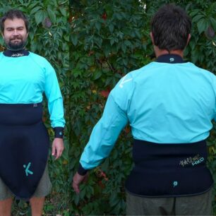 Já jsem měl tohle kombo s dlouhým rukávem na testování po celou letošní sezonu a jsem z něj tak nadšený, že se moje ostatní vodácké bundy letos ještě nedostaly na řadu a už asi jen tak nedostanou. Důvodem je tedy i fakt, že jsem na jaře namohl ze zdravotních důvodů pádlovat, protože tohle spojení opravdu není vhodné do oblevových Jizerek a podobných akcí, ale na všechny Trnávky, Čerťáky a podobné počiny to byl naprosto perfektní parťák. Bunda je mi velice pohodlná a na vodě z ní mám skutečně pocit, jako bych na sobě nic neměl. Nemám problém si pod ní vzít jen spodní vrstvu s krátkým rukávem nebo funkční tílko, protože materiál Carbonflex je i na holou kůži velmi příjemný. Ano, uznávám, že manžety nějakou tu vodu dovnitř pustí, ale popravdě mnohem míň, než jsem očekával. Rozhodně to není žádný průtokáč a to jsem s bundou jezdil třeba ty zmíněné Čerťáky, kde už člověk tuhle vlastnost dokáže dobře posoudit. V lodi jsem měl perfektní sucho a trochu mokré zápěstí a nějaká ta vlhkost kolem krku, kdo by to řešil.