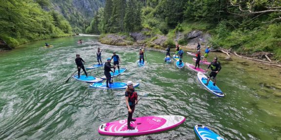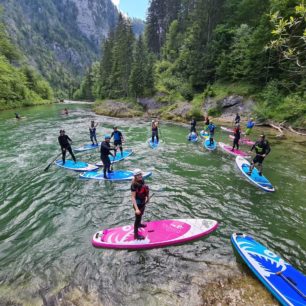 Soča nabízí rozmanitější vyžití. Na campu jsou vítáni i vyloženě turisticky zaměření jezdci, kteří si chtějí užít krásy místních jezer, soutěsek a kopců. Údolí Bovce má co nabídnout milovníkům divoké vody, pěší turistiky, gastronomie i snílkům, co rádi posedí u vody, samozřejmě s pádlem v ruce. Po úvodním pádlování na jezeře Lago di Predil se rozřadíte do skupinek dle výkonnosti a vyrazíte na jednotlivé úseky Soči, nabízející škálu obtížnosti od peřejí srovnatelných s těmi kolem Rožmberka na Vltavě až po výzvu v podobě slalomové trati v Trnovu. Tyto úseky budeme různě mixovat a jezdit i několikrát. Den vyplníme výlety do soutěsek Soči, výstupem na 120 m vysoký vodopád a mnoha dalšími zážitky, které se nesmazatelně zapíší do vaší hlavy i duše. SUP campy nabízí intenzivní zážitky. TAMBO průvodci vám předají své letité zkušenosti a odkryjí tajemství každého údolí, které za tu dobu objevili. Za pár dní na řece natrénuješ více než sám za mnoho týdnů. Těšíme se na tebe na našich campech v Rakousku i Slovinsku nebo na intenzivních kurzech v pražské Tróji.