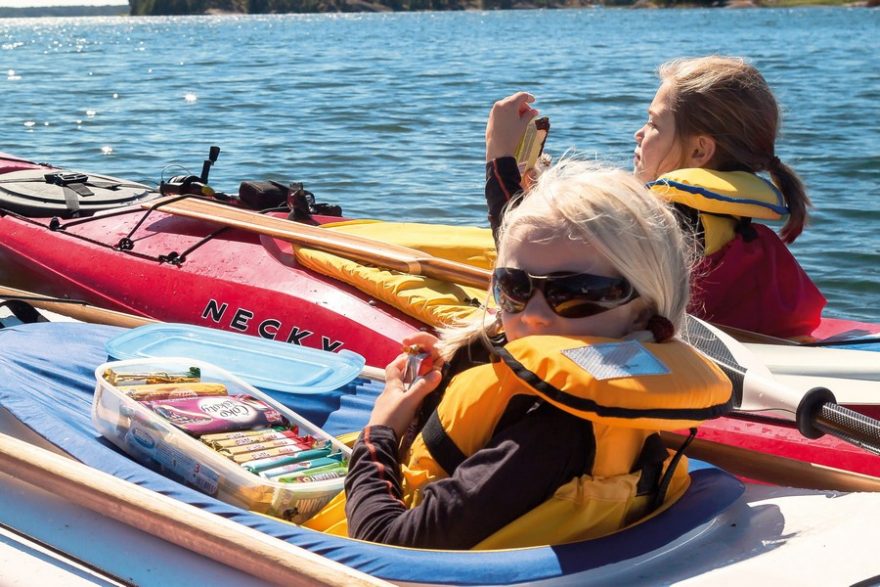 Pravdou je, že děti jízda na kajaku moc nebrala, občas jim asi připadala jako nutné zlo nebo nezbytný prostředek jak dojet na nové místo. Už druhý den zjistily, že v kajaku si můžou poměrně pohodlně odpočinout, případně se prospat tak, aby sotva někde zastavíme, čile vyskočily a šly na průzkum ostrova, na ryby nebo hledat houby. Pádlování prostě moc nedaly.