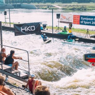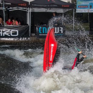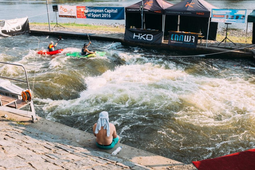 Pětihodinovka utekla jako voda a už se na rampě chystali první borci kategorie Kayak X. Pokud jde říct o Sprintu, že připravil výbornou podívanou, o Crossu už musíme mluvit jako o podívaný vyloženě famózní. Všechny tři kategorie si šly po krku od samýho startu a v mnoha případech se nejednalo o business pro slečinky. Start z rampy, rychlej průjezd kolem branky, potom touch banner, další v Tlamě (kde se soustředila téměř celá a početná fanouškovská zóna) a poslední banner visící pod mostkem, stvořily poměrně masivní trasu.