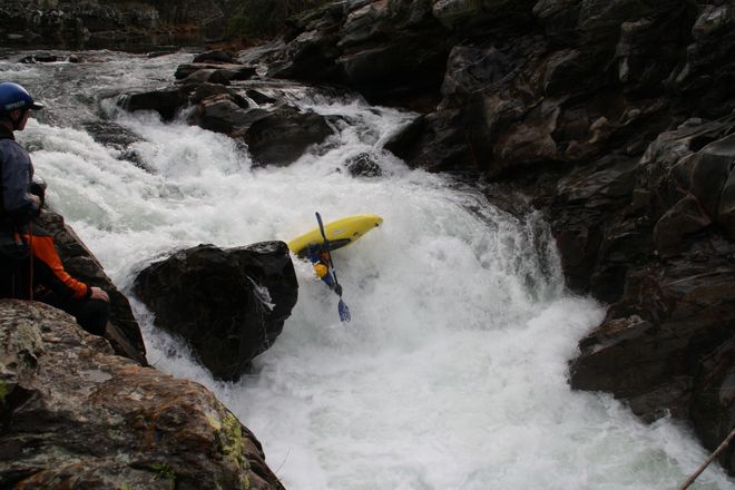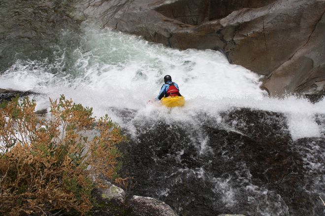 První kilometr je, jako na ostatních řekách tady v Galicii, volej. Náhle ale řeka mizí někam do údolí a není vidět kam. Jsme u prvních těžkých míst. Hned na úvod je tu snad každému vodákovi známá série slidů. Nikdo jsme však netušili, že je zakončená dvoumetrovým dvojskokem, který umí potrápit když nestihnete boof. Následuje super slajd a poté již další vyhlášené místo – vodopád Backbreaker.