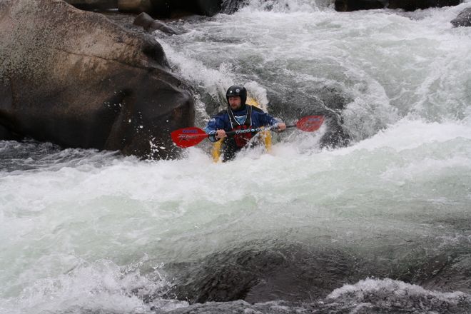Na vodu nás je i s místními asi dvanáct. Leonel tahá další eso z rukávu a jedním z těch dvanácti lidí je místní princezna a skvělá slalomářka Marta. Udiveně zíráme jak je krásná a potom na řece i jak pádluje. Řeka je krásná v hlubokém skalnatém údolí, s pětkovými místy střídanými příjemnou trojkovou vodou.