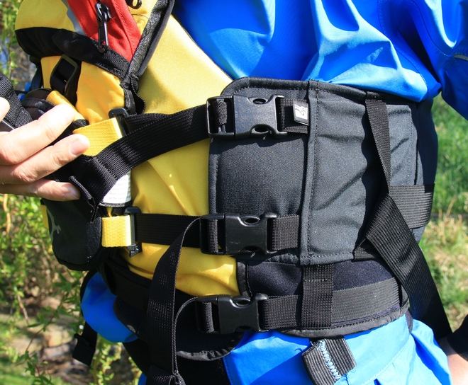 Vesta Maximus Centurion amerického výrobce Kokatat je určena primárně na divokou vodu, ale dá se dobře využít i na moře (jedna kapsa velikostně uzpůsobená na VHF) a další vodácká odvětví.