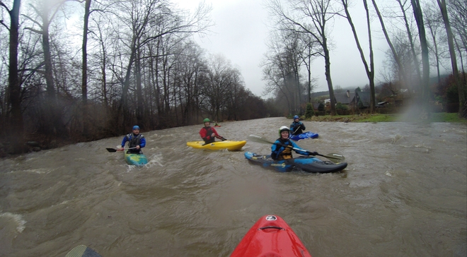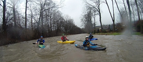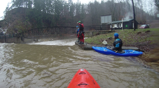 V sobotu v devět se na naší choceňské loděnici sešli čtyři kajakáři a tři singlíři. Vyrazili jsme na Litický oblouk, cestou jsme jedno auto nechali v Potštejně na parkovišti u cukrárny a pokračovali jsme výš. Za Vamberkem všude kolem cest tekla voda, doufali jsme, že odpoledne ještě trochu víc nateče i Zdobnice.