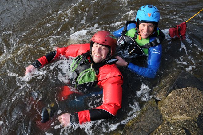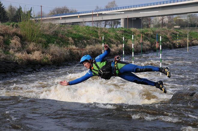 Pro tuto záchranu si vystačíte s minimálním vybavením, ale to nejdůležitější raději napíšu. Dostatečně teplé oblečení – rychle poznáte, jestli jste se oblékli úměrně teplotě vody. Kvalitní vesta s bezpečnostním hrudním popruhem, jehož použití jste vyzkoušeli předem. Je-li pás zapnutý, musí udržet velký tah. Po otevření bezpečnostní přezky se ale musí rychle uvolnit.