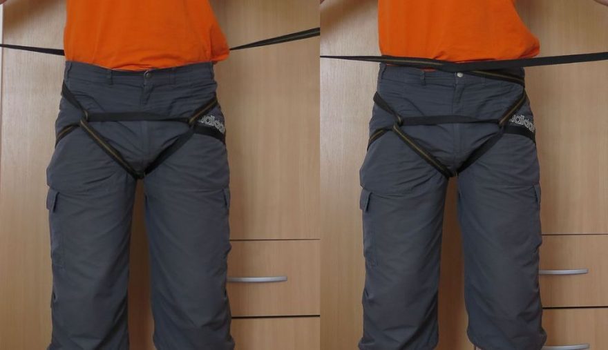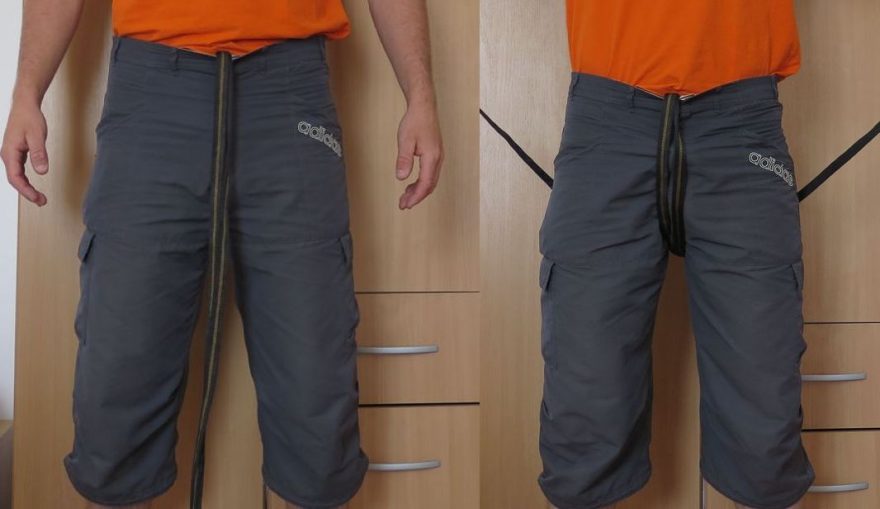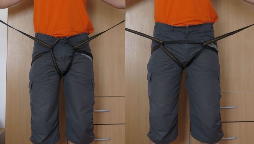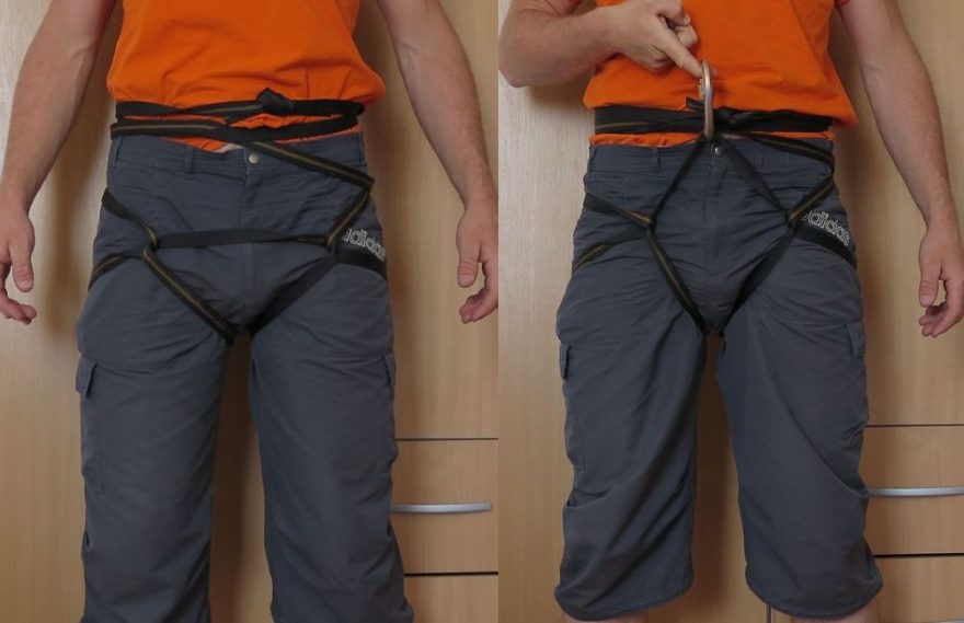 Druhá možnost je sedák z dlouhého popruhu respektive kusu lana. Kromě fotek je tady asi dobré napsat, že víc závitů kolem pasu znamená větší pohodlí a že na ukončení je vhodné použít například protisměrný vůdcovský uzel.