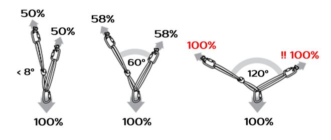 Kombinujeme-li víc slabších kotvicích bodů, musí být štand sestrojen tak, aby se kvůli selhání jednoho z bodů celý nerozpadl (obr. 4 až 9 a 12 a 13). Je také žádoucí, aby úhel mezi jednotlivými kotvícími lany (smyčkami…) byl co nejmenší (obr. 1). Tím se vyhneme přetěžování kotvicích bodů i vlastního materiálu.