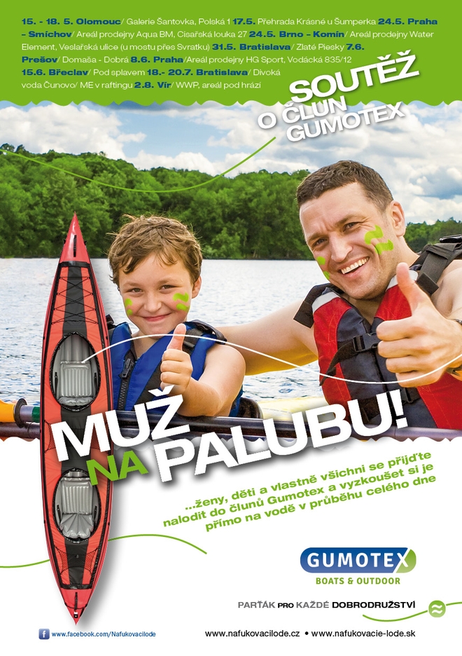 Jedna z prvních akcí se konala už na konci dubna – Lodě na vodě v Praze a končit budeme až v srpnu. Nabízíme tímto spoustu příležitostí kde a kdy nás navštívit! A co vás vlastně čeká?! Nové barevnosti nafukovacích člunů Gumotex k vyzkoušení zdarma, zábava pro děti i dospělé a hlavně soutěž o člun Gumotex!!!
