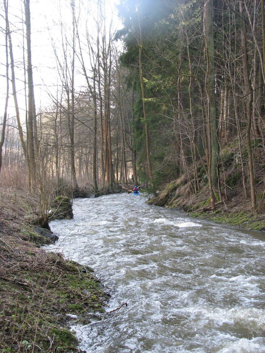 Pod obcí, kterou říčka protéká regulací, začíná meandrující úsek s rychlým proudem. Pro vodáka potokáře běžná záležitost, pro začátečníka možnost zdokonalit se v řízení lodi, nebo další místo tělesné očisty.