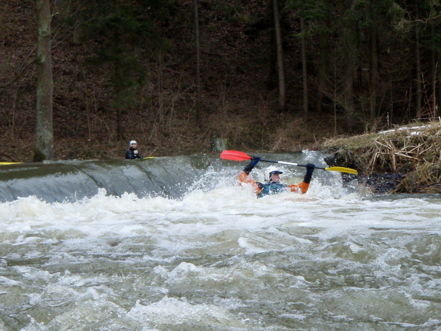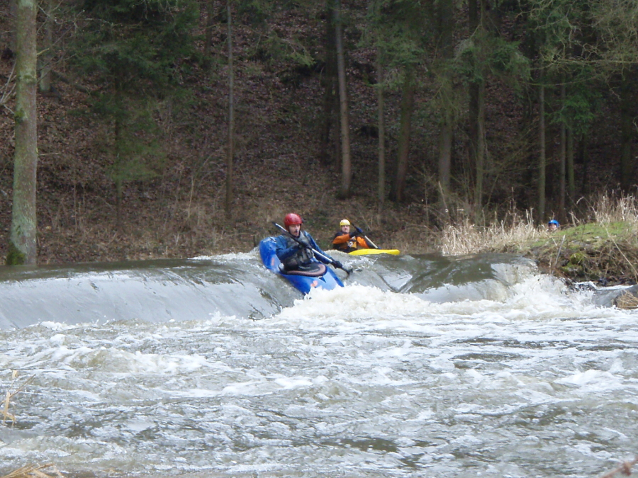 Jezy na tomto úseku jsou nepříjemné, některé kolmé, jiné sice šikmé, ale za určité vody o to nebezpečnější. Jez u samoty Karlov je z nich nejhorší. Hodně šikmý, za menší vody bylo možné jej u pravého břehu splout, ale za mírně vyšší vody to již nejde. Když se špatně najede, loď je vtažena bokem do válce pod jezem a nedostává se z něj lehce. Jeden život už má na svědomí.