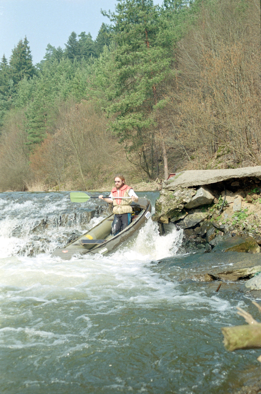 Řeka svižně proudí posledním údolím až k šikmému jezu, který přímo vybízí jet z voleje; stačí zkontrolovat, že dole není překážka (strom), a pak se nechat zprava vyhodit do poslední peřeje WW II(+). Přichází zklidnění, voda se rozlévá do široké navigace a jen mírně načechraná spěje k ústí do Svratky v Předklášteří.