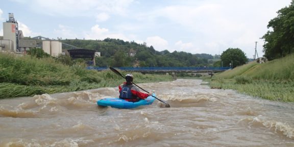 Po chvíli už připlouváme do Nemšovej, kde se koryto opět zúží a voda valí místy s velkými vlnami. Podplouváme most, za kterým máme odstavena auta. Já však neodolám a plavbu si protáhnu o půl kiláku až na soutok s Váhem, před kterým je ještě jedna pěkná peřej.