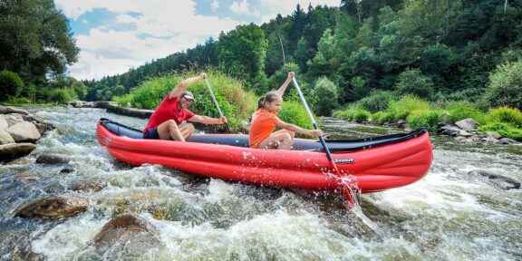 Jenom 30 kilometrů jižně od Prahy najdeme jeden z nejhezčích vodáckých úseků v Čechách – malebné údolí řeky Sázavy s množstvím peřejí.
