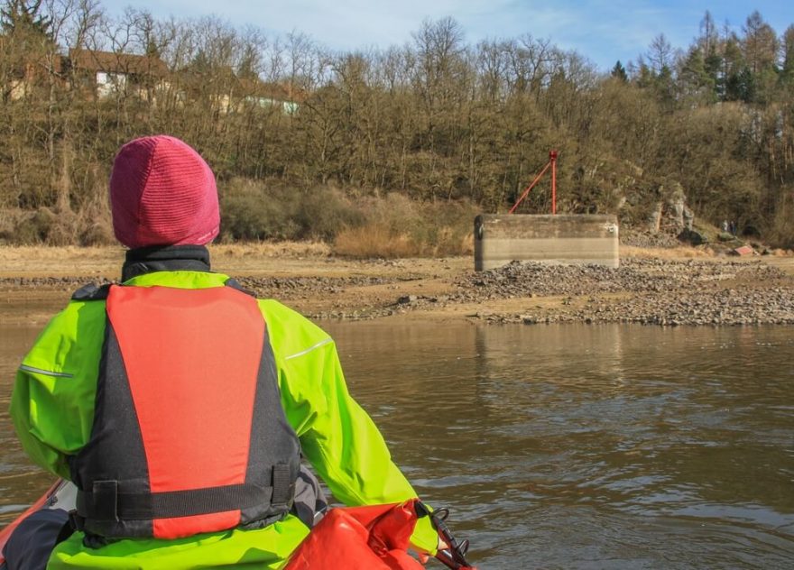 Když už jsme skoro u mostu, přibývá na obou březích lidí, které sem vylákal víceméně stejný důvod jako nás. Podolský most je snadno dosažitelný bod s velkým parkovištěm, a tak představuje ideální cíl pro ty, kteří chtějí prozkoumat odhalené zajímavosti, přičemž neholdují zimnímu vodáctví jako my.