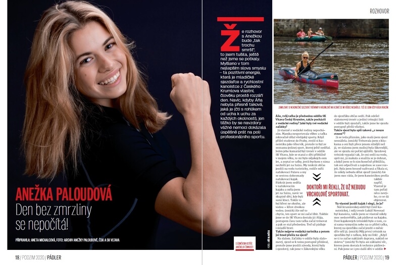 Rozhovor s Pígem jsme už avizovali o pár řádků výš, ale v Pádlerovi vždy bývají rozhovory alespoň dva. Ten druhý rozhovor je s mladou českou sjezdařkou a rychlostní kanoistkou Anežkou Paloudovou a je to opravdu síla. Anežka se s ranami osudu, které v jejím případě byly hodně tvrdé a nekompromisní, pere neuvěřitelně statečně a s obrovským optimismem. A do toho všeho ještě zvládá získávat medaile na opravdu velkých závodech.