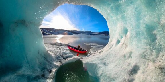 Do turistické kategorie, ale určitě i do kategorie exotiky, patří fotoreportáž od Pavla Stračánka, který se nám pokusil přiblížit putování s nafukovací kánoí po ledovcovém jezeře plném obřích ledových ker. Pokochejte se fotkami z ledových tunelů a těsných průjezdů okolo ledových velikánů zářících nejrůznějšími odstíny modré barvy. Je to naprostá fantazie.
