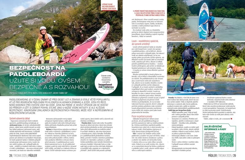 Abychom nezapomínali ani na praktické články, tak hned za rozhovorem najdete text o tom, jak si bezpečně užít paddleboarding. Ten má totiž oproti klasickým plavidlům některá specifika a řekli jsme si, že je dobré si je občas připomenout. S textem nám nemohl vypomoct nikdo jiný než Honza „Rotťák“ Rott.