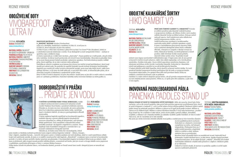 Následují recenze vodáckého vybavení, ve kterých jsme tentokrát prověřili: boty Vivobarefoot ULTRA IV, šortky Hiko Gambit V.2, paddleboardové pádlo Panenka Paddles STAND UP a knihu od Vladimíra Bureše nazvanou Dobrodružství v prášku …přidáte jen vodu.