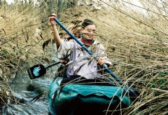 Začal jsem pečlivě zkoumat rákosí kolem bahnité placky a snažil se, najít místo odkud jsem to vlastně přišel. Po chvilce jsem našel pár stébel polámaného rákosu a pak už to šlo rychle. Soumrak mne popoháněl a přesto, že jsem několikrát zaváhal, začal jsem poznávat místa, kudy jsem prošel. Ostrov jsem doslova přeběhl a našel jakousi stezku na druhou stranu. Když jsem se dostal na pevný břeh, byla už tma, ale ohromně se mi ulevilo. Chvíli jsem si odpočinul a pak přešel rozlehlou louku. Uviděl jsem tam stavení, kde se svítilo. Zamířil jsem tam. Jak jsem se přibližoval, sílil zuřivý štěkot psů, který vylákal ven obyvatele usedlosti. Ti když mne uviděli ve světle lampy, jak celý od bláta táhnu na ramenu kajak, okamžitě se mne ptali, jestli jsem v pořádku a jestli se mi něco nestalo. Ujistil jsem je, že jsem v pohodě, jenom že jsem trochu zabloudil v rákosí. S úlevou mi řekli, že jsem mněl štěstí. Nedávno prý odtud tahali nějakého zbloudilého houbaře vrtulníkem.