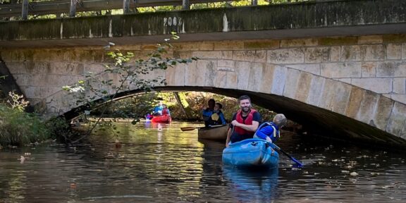 Břehy Opatovického kanálu lemují listnáče. Podzimní termín je co do barev rozhodně dobře volený. Letos je paleta trchu chudší, podzim bude asi v prosinci… Na druhou stranu je po dlouhé době na tričko. Kořením Opaťáku jsou mostky a jejich podjíždění. Není jich moc, některé jsou ale velmi rozverné a hravé, prvojezdci pak vymetají pavučiny pod nimi.