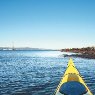 Přejít do galeriePádlování v zimě s sebou nese něco kouzelného; houpat se v moři s výhledem na zasněžené kopečky, na kterých jsi strávil předchozí den lyžováním, má přece jenom něco do sebe! Úplné pozlátko to ale taky není, kdo už někdy rozbíjel pádlem zmrzlou špricku, aby ji mohl sundat, nebo strhával k obočí přimrzlé brýle, asi mi to potvrdí.